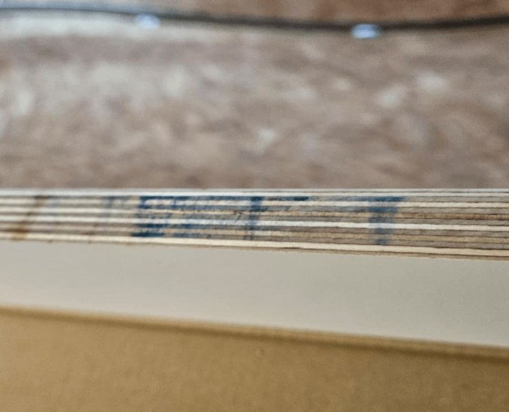 De spiegel is iets te kort, wij lossen dit op zodat het bijna onzichtbaar is. De kopse kanten hebben iets blauws, een blauwachtige gloed.