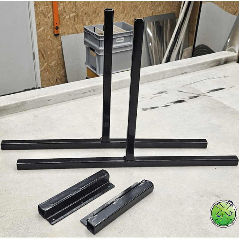 8 complete setjes beschikbaar, zwart gepoedercoat. Tevens nog 3 losse T-stukken.